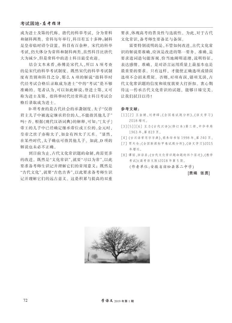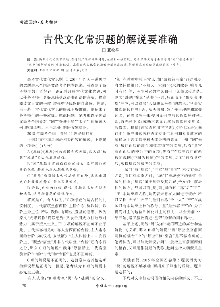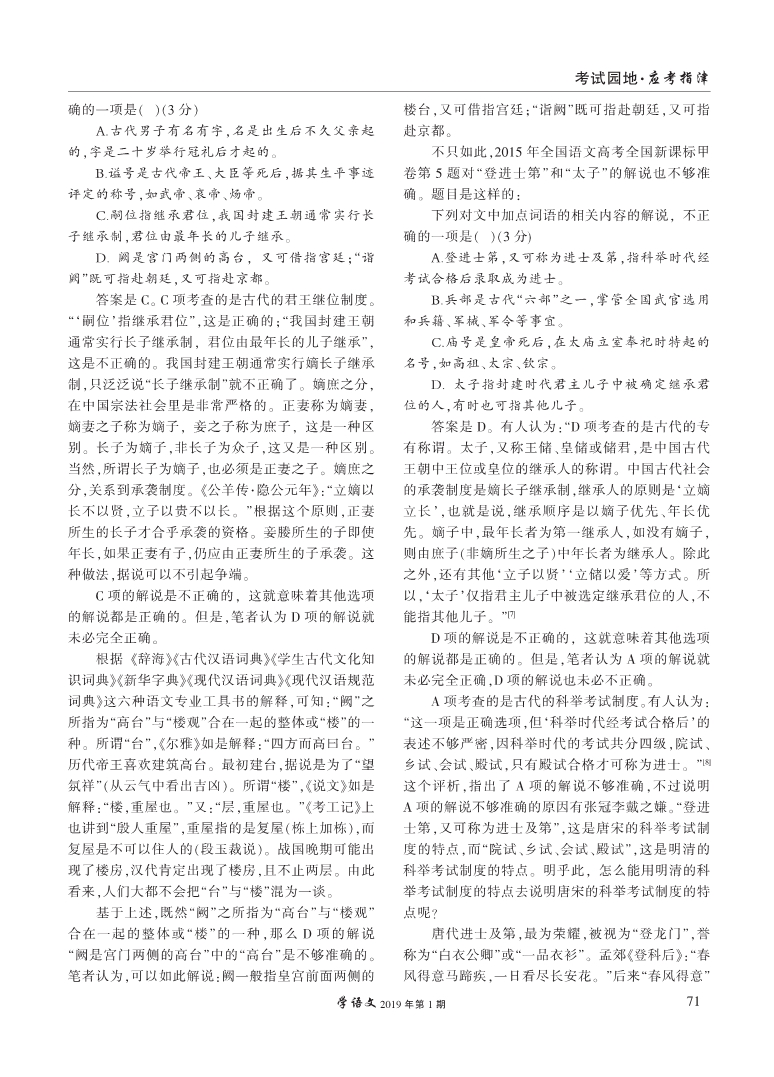 古代文化常识题的解说要准确
