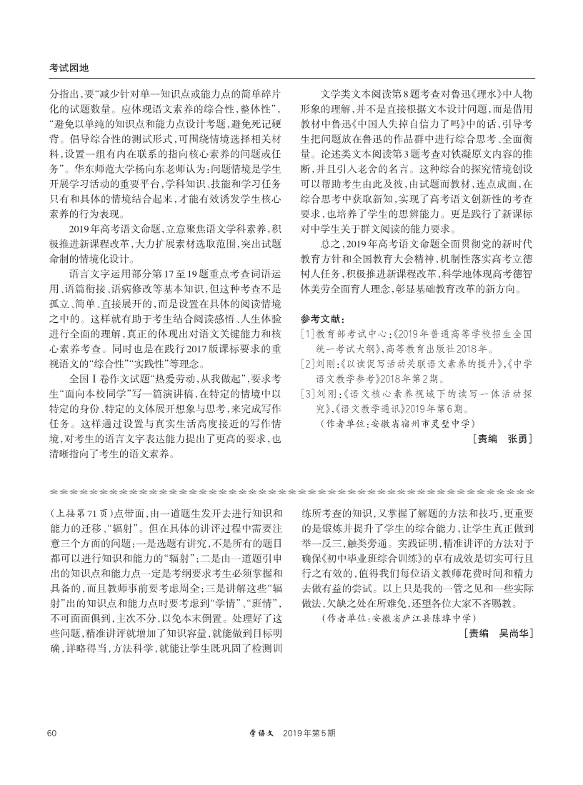 2019高考语文全国卷题分析