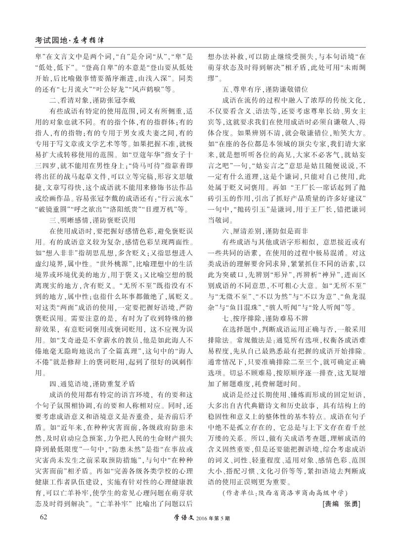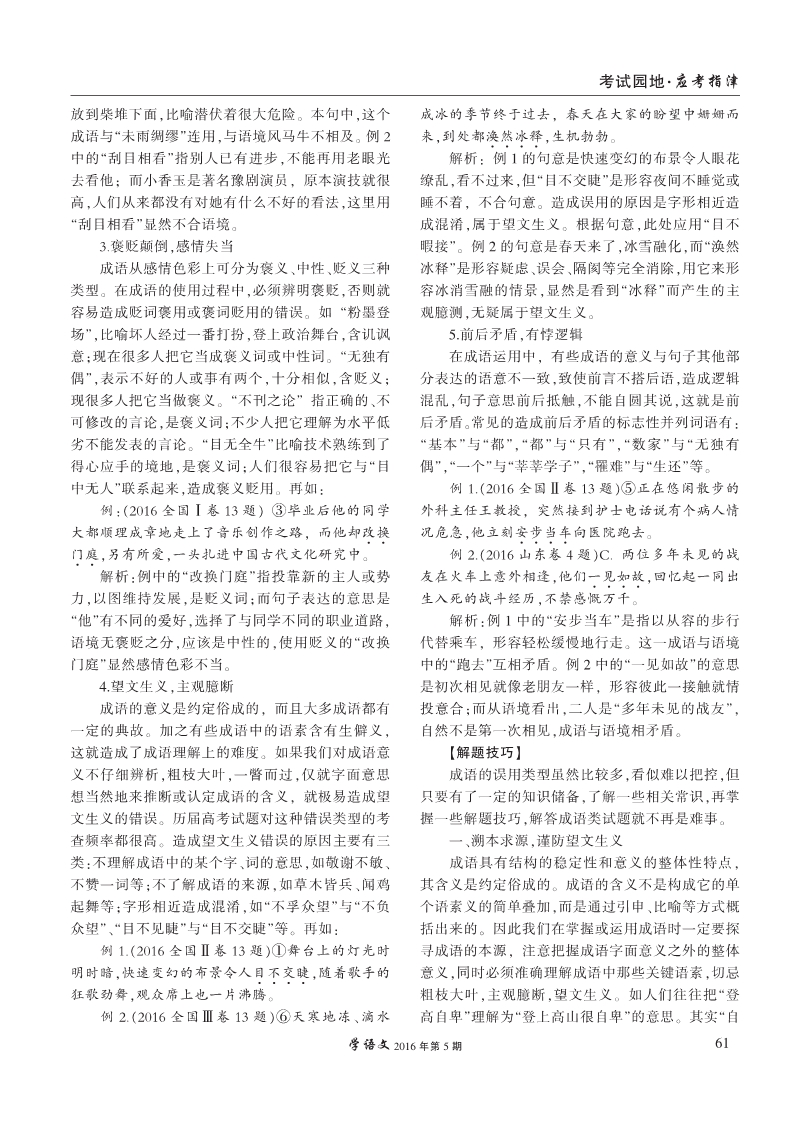 从2016高考试题看成语考查类型及命题趋势