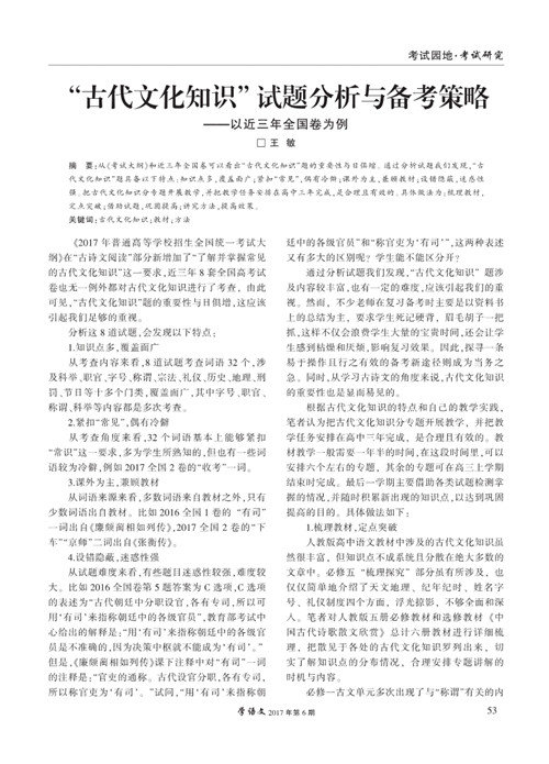 “古代文化知识”试题分析与备考策略