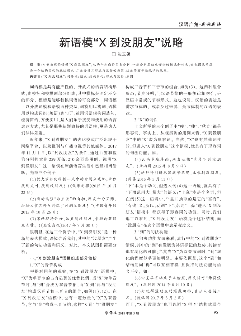 新语模“X到没朋友”说略