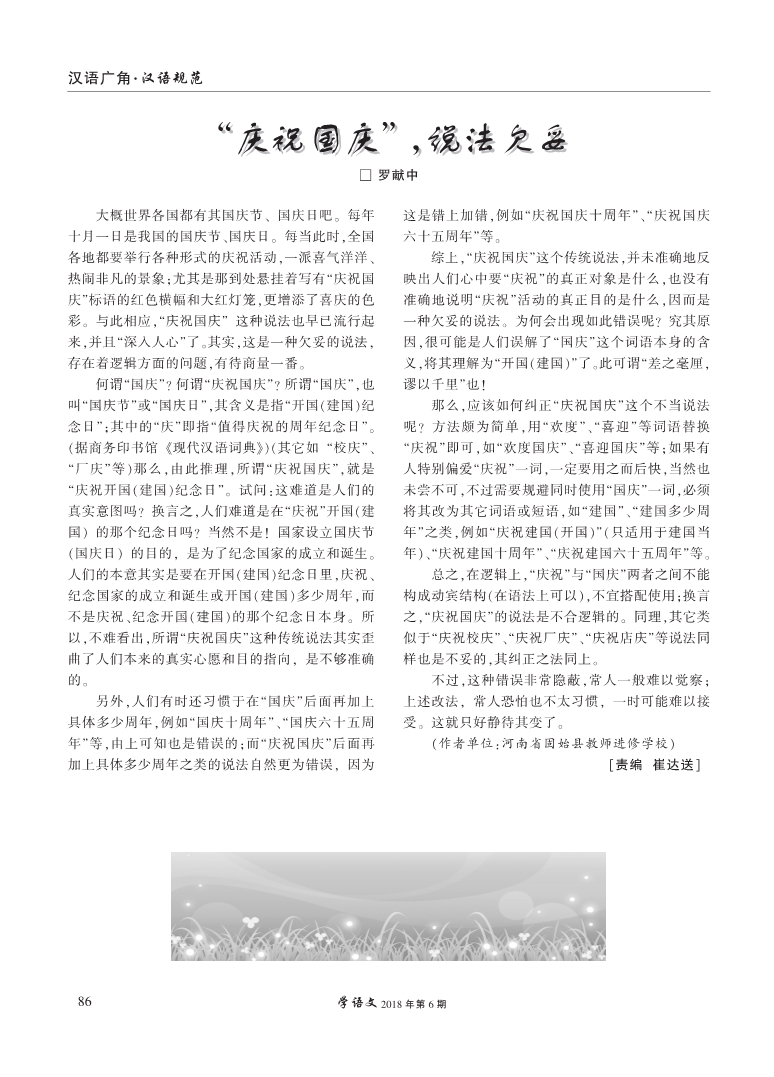“庆祝国庆”,说法欠妥