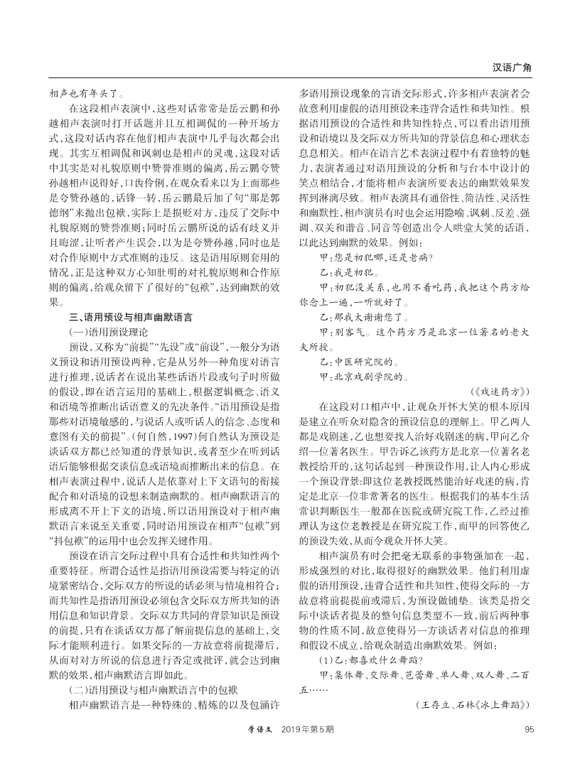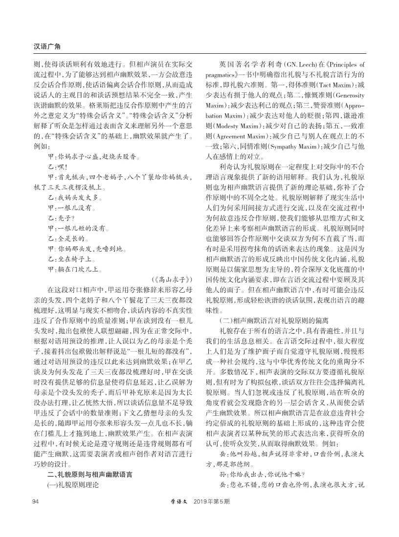 谈相声幽默语言和语用原则