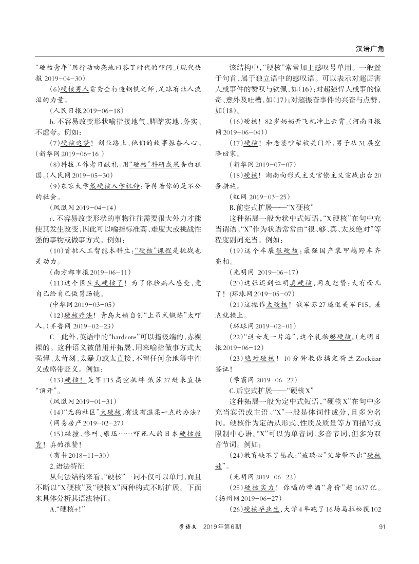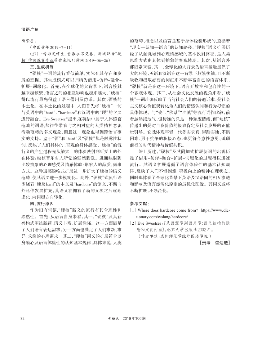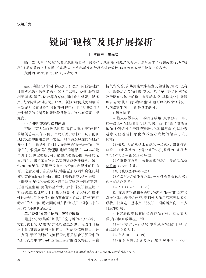 锐词“硬核”及其扩展探析