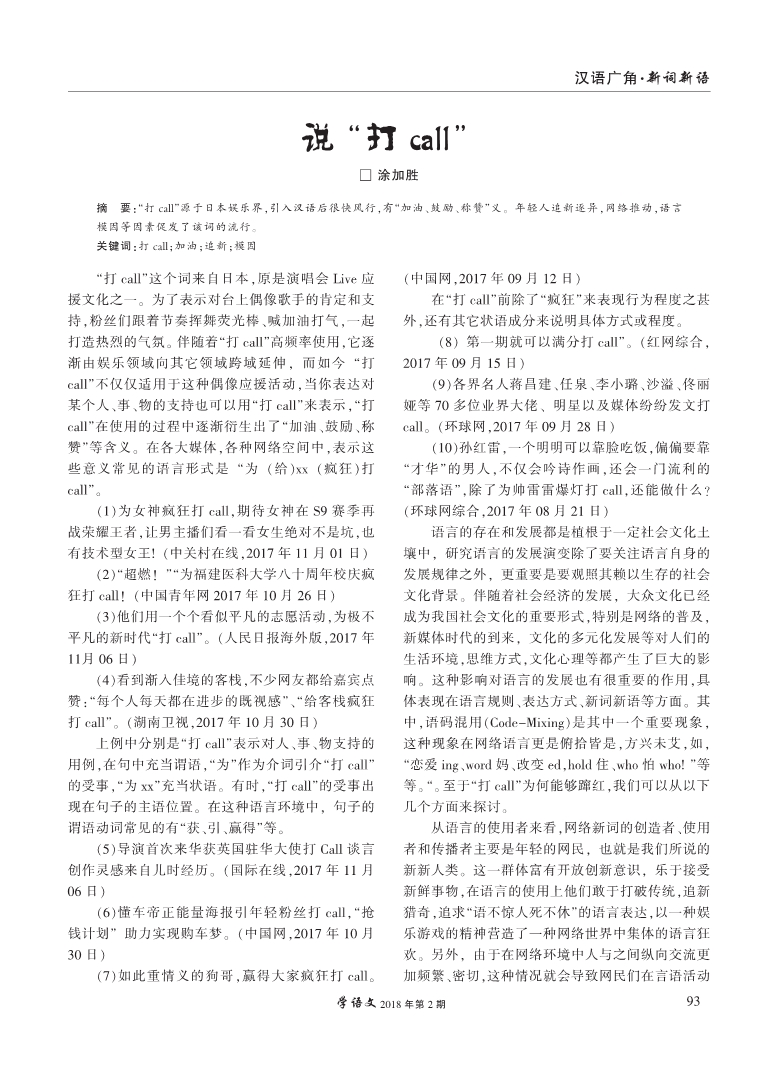 说“打Call”